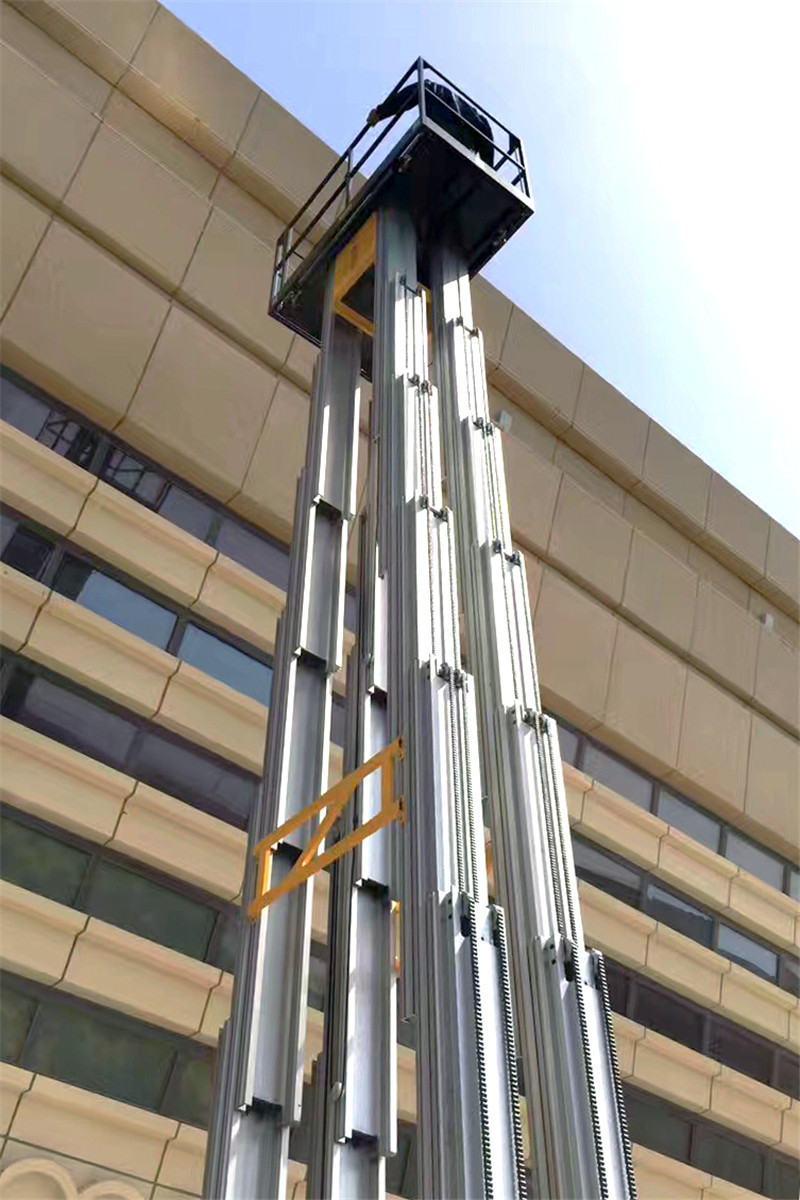 Além disso, aeroportos, estações, docas, hotéis, centros de convenções, fábricas e outros ambientes requerem frequentemente estas plataformas de trabalho aéreo para elevar os operadores para trabalharem em alturas.